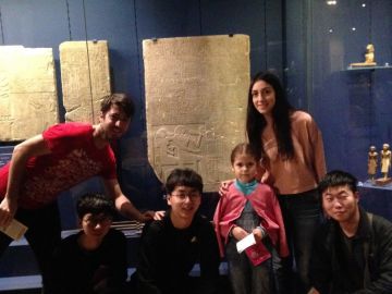 Юнус Эмре Айзин: "Там [в музее] мы видели много скульптур из Греции, Египта, Италии. Когда мы были в зале, в котором представлено искусство Древнего Египта, мы видели девочку с матерью. Она осматривала скульптуры внимательно и пробовала расшифровать древние надписи. Это очень интересно, потому что я думаю, что ей только 7 или 8 лет. Мы сфотографировались с девочкой".